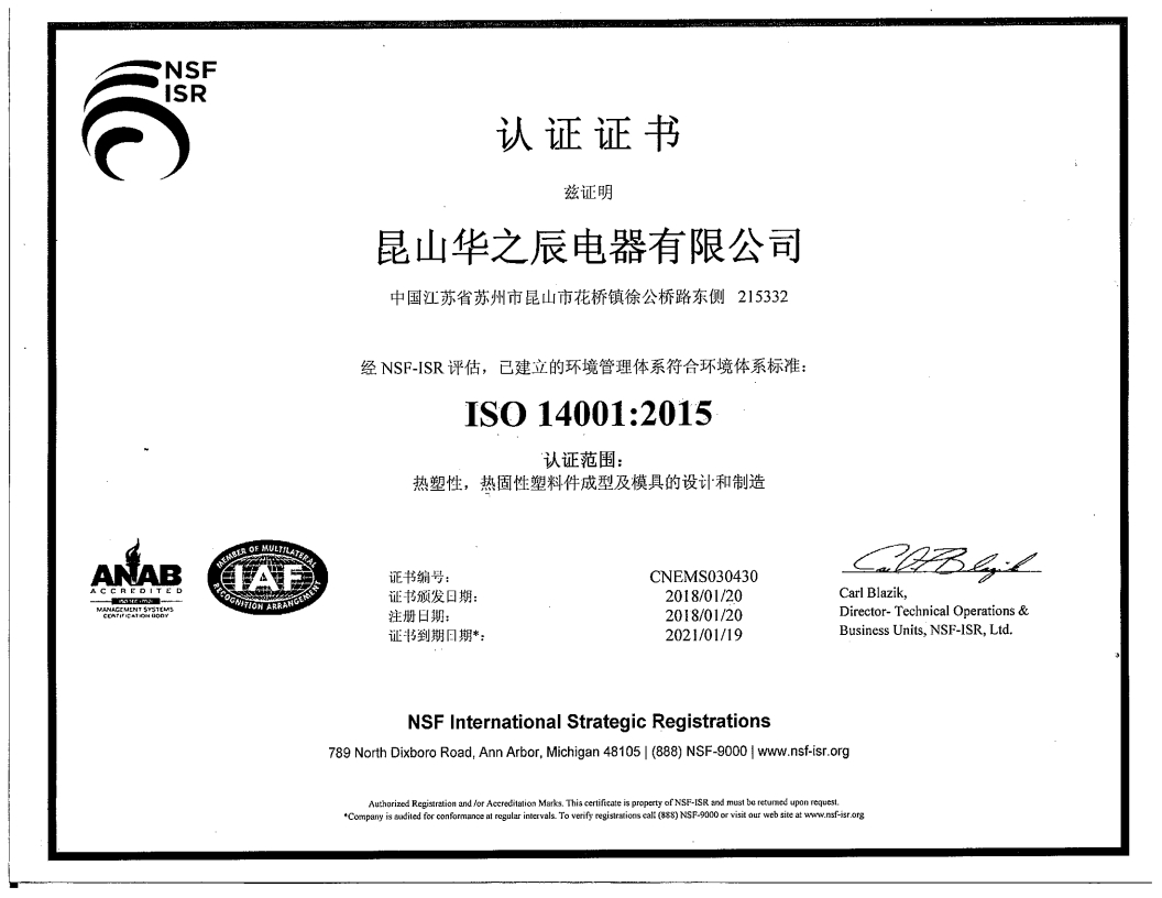 昆山華之辰電器有限公司于2006年9月設立成立,專業從事電木(UP,PF,DAP,MF,MU)、 密胺樹脂、高分子復合材料( BMC 、 SMC、 DMC )等熱固性塑料和熱塑性塑料 (PBT.ABS.PC.NYLON.PP) 射出成型加工。主要為SIEMENS、廈門 ABB 、施耐德、ELECTROLUX,、伊頓等世界知名客戶配套加工生產產品?! 」緸殚_拓市場制定更優的發展戰略,目前已經擁有了進口電木、 BMC 射出成型機幾十臺( 100T-500T )及先進的模具加工設備、檢測設備,為生產出合格的產品提供了充足的設備保證。通過公司不斷的進取,于2007年 3 月通過 了ISO9001 :2000 質量體系認證,并于廠內全面推行全員質量管理和“ 6S ”運動。2011年通過ISO14001體系審核,并與2018年通過ISO14001體系跟蹤審核。制定有系統的環境管理程序。同時于2015年通過三級安全標準化審核,并于2018年通過復審?! 」緩哪>咴O計制作、制品成型加工與組立一體化之完善運營流程,更保證產品的品質與合理作業成本,使之在市場上更具竟爭力。我們一貫堅持“以質為本···